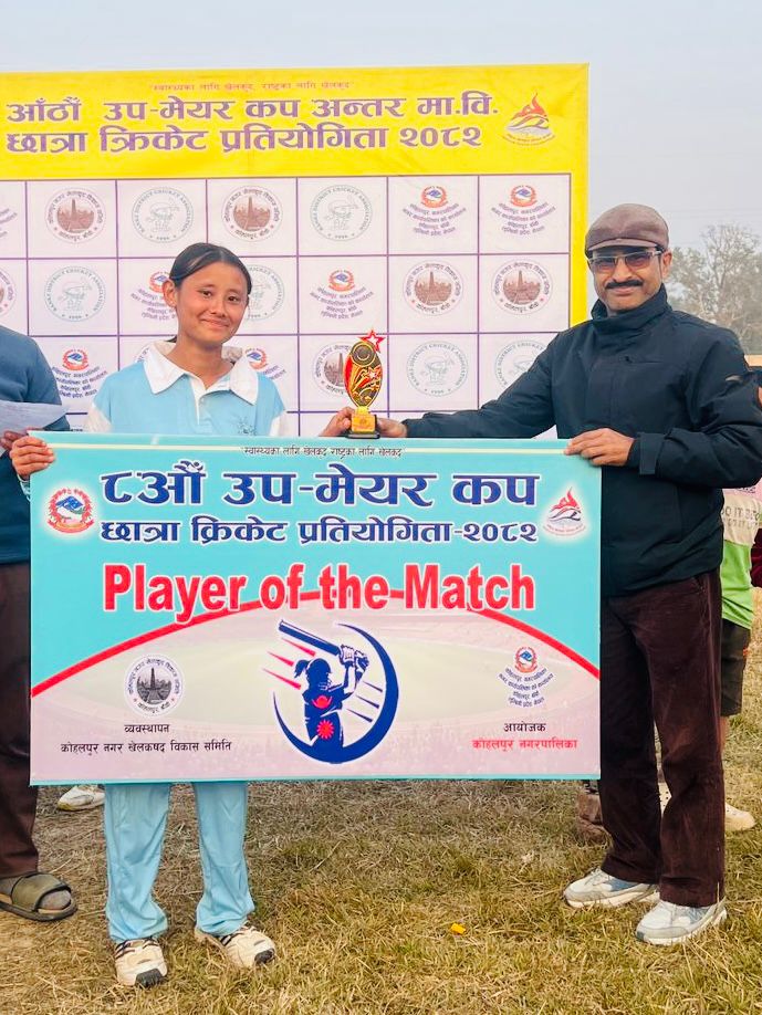 कोहलपुर नगर खेलकुद विकास समितिको सञ्चालन तथा व्यवस्थापनमा जारी आठौँ उपमेयर छात्रा कप अन्तरमाध्यमिक विद्यालय क्रिकेट प्रतियोगितामा भोलि (शुक्रबार) सेमिफाइनलका खेलहरू हुने भएका छन्।